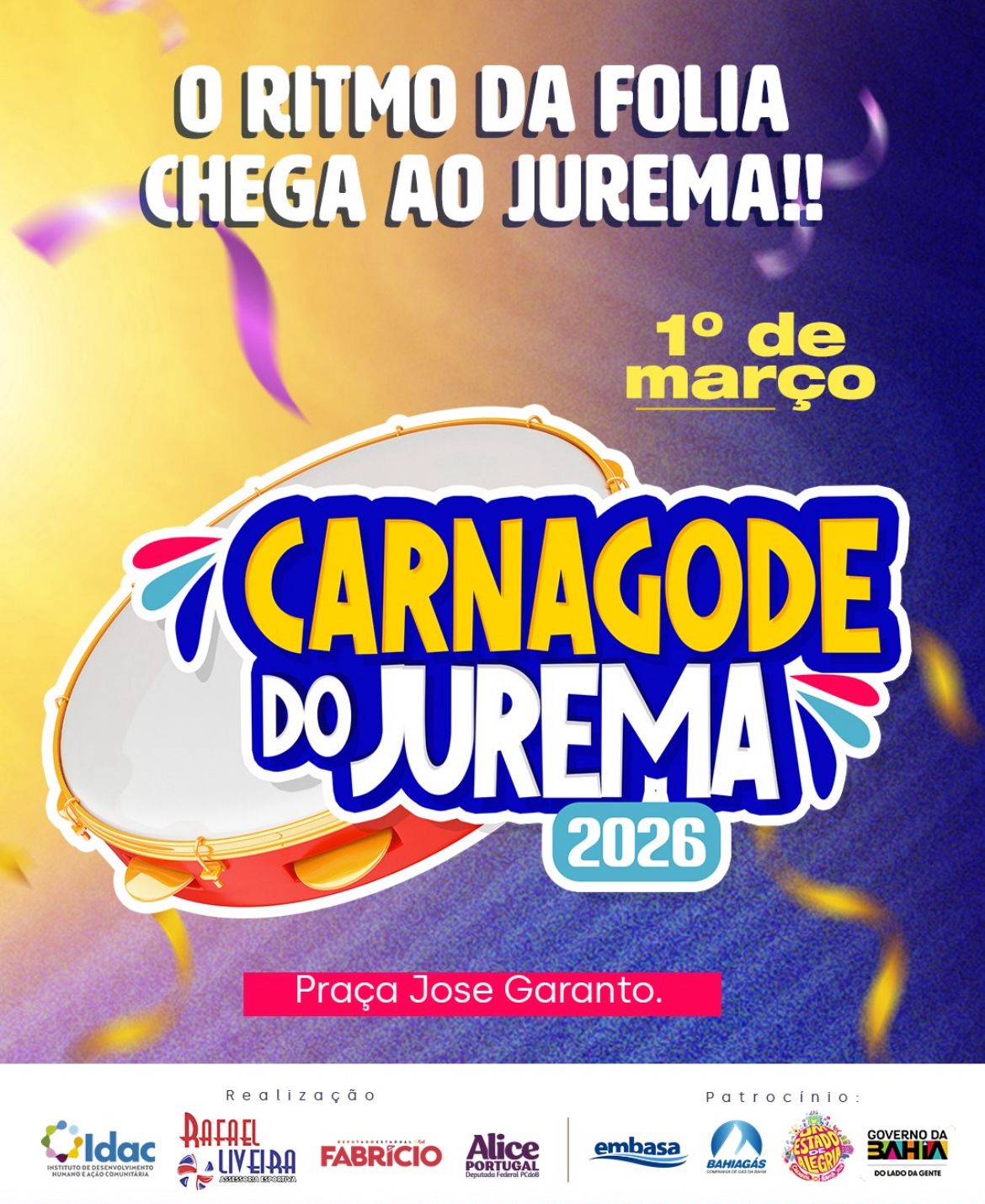 A realização é fruto de uma parceria entre o mandato do vereador Ricardo Gordo, o deputado Fabrício Falcão e o IDAC (Instituto de Desenvolvimento Humano e Ação Comunitária), reforçando o compromisso de promover cultura, lazer e cidadania nos bairros de Vitória da Conquista. O evento conta ainda com o patrocínio do Governo do Estado da Bahia, por meio da Embasa e da Bahiagás, apoiadores fundamentais para a continuidade desse projeto que valoriza a comunidade.