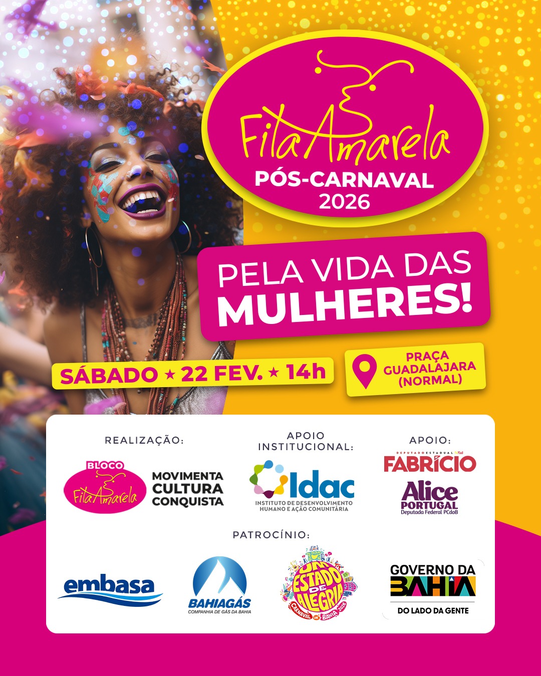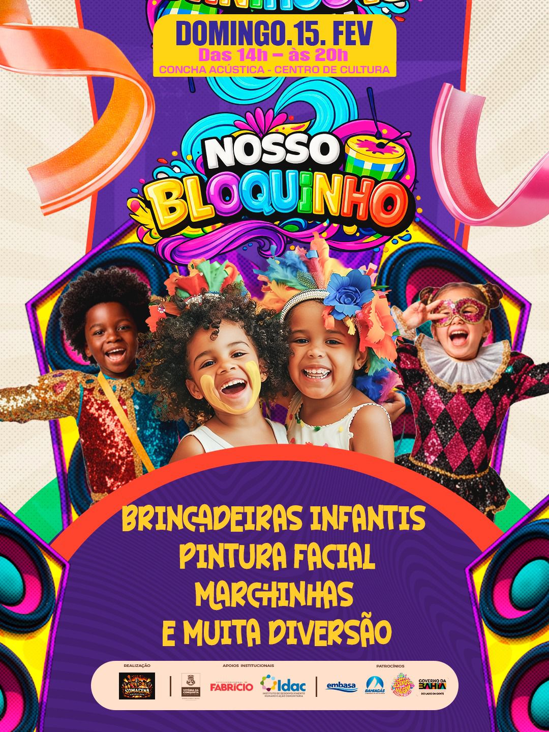 O Carnaval Cultural de Vitória da Conquista realiza, no próximo dia 07 de fevereiro, a aguardada 2ª edição do Carnaval da Família no bairro Patagônia. O evento, que se consolidou como um dos momentos mais acolhedores da folia conquistense, será realizado na Praça Iza Medeiros, a partir das 14h, reunindo música, diversão e um ambiente seguro para todas as idades.